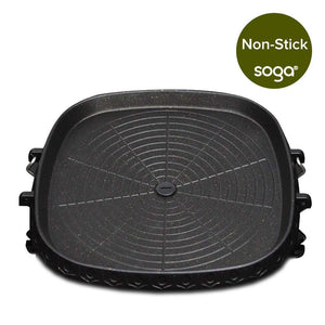 - SOGA Stone BBQ grill plate or pan is a popular cooking appliance that is used to grill samgyupsal, galbi, chadol Bali, or any type of meats. It's a wonderful and fun way to barbecue any types of meat, the Korean way, at restaurants or even at home. These days, stone plates grill plates are becoming more popular than the traditional model plates which are made out of metal with non-stick coatings or complete caste irons for better, healthier cooking experience These stone plates can be placed on stovetops or on portable burners and most have a well-built draining system to collect excess oil and fat, minimizing oil splashing while grilling. They are very affordable and easy to clean for long-lasting care and usage. Korean barbecue dish stone layer non-stick roaster smokeless BBQ outdoor portable Teppanyaki