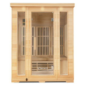 Elevate your wellness experience with the ReGen8 Trio Infrared Sauna, designed to accommodate three people comfortably, making it perfect for friends and family to enjoy together. This spacious sauna features advanced infrared heating technology that delivers deep, soothing warmth to improve circulation and relieve muscle tension. Crafted from durable Hemlock wood, the ReGen8 Trio is both durable and fits in with your cosy home aesthetic. All our saunas have been rigorously tested to meet strict standards, ensuring low EMF emissions and built-in safety features. Create cherished memories and prioritise your health in this inviting sauna that beautifully blends comfort and innovation.