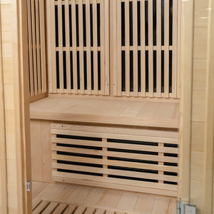 Everyone gets a chance to unwind in this spacious sauna side by side while basking in the soothing benefits of infrared heat. This generous capacity creates a perfect environment for collective rejuvenation and well-being, perfect for families, catch-ups with friends or guided meditation sessions.